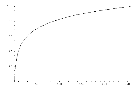 picture shows relation between amount of used bytes (x axis) and compression ratio in % (y axis)