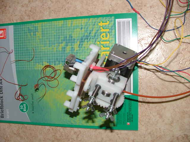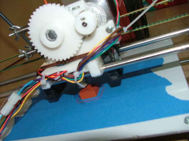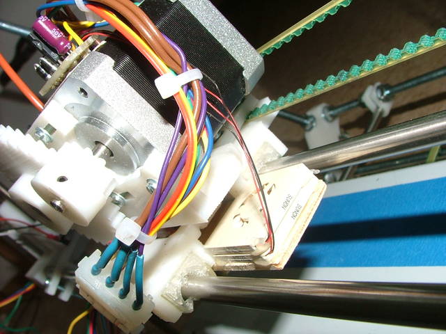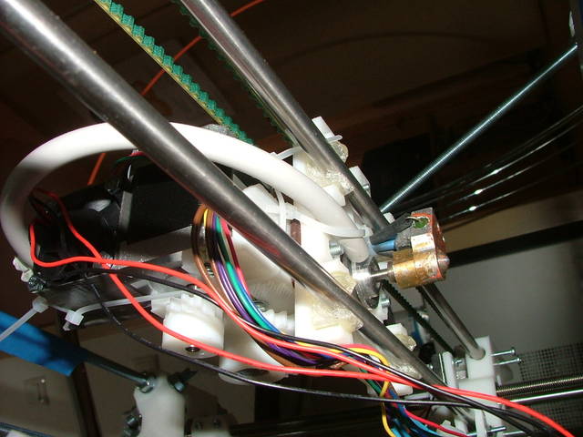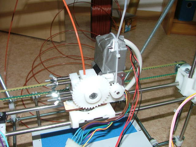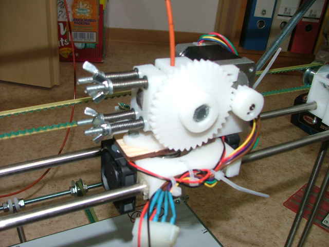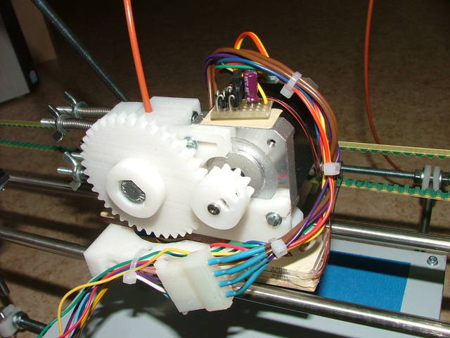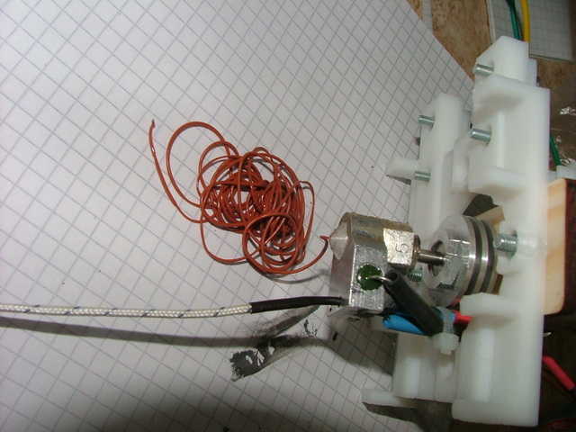 the extruder and the hotend now work as an axis controlled by ramps 1.4, sprinter and pronterface. i'm really happy it works! | another photo |