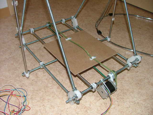 The bushings for the Y-axis have been glued and the glue will now dry for 24 hours. | The Y-Axis is driving! I'm impressed by the possible driving speed. |