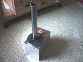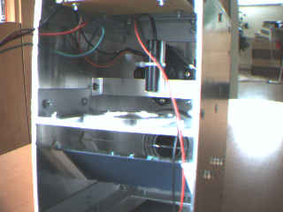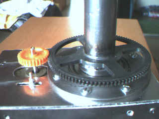 Erkennbar ist die Glasscheibe die vor dem Spiegel montiert ist, sie erfuellt mehrere Aufgaben auf einmal, siehe "Technische Beschreibung". | Dies ist der Antrieb des Rohres ueber einen Schrittmotor. |