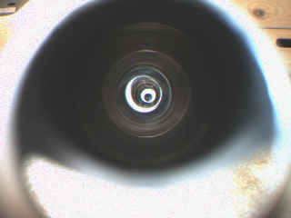 Am oberen Ende des Rohres wird noch ein Spiegel befestigt, ansonsten ist dies hier bereits die endgueltige Version. | Ein Blick von oben ins Rohr. Ich habe den unteren Spiegel verdreht, normalerweise darf sich hier die Kamera nicht spiegeln. |