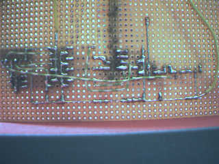 Meiner Meinung nach ein sauberer Aufbau. Die haesslichen grossen gelben Kabel, die auf der Oberseite verlaufen, wollte ich spaeter abschaffen, sie dienten nur dem Testzwecke. Leider alles Umsonst.. :-( |
