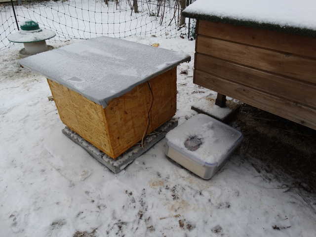 | Die beheizte Tränke und die Computerkiste. | Tränke geöffnet. |